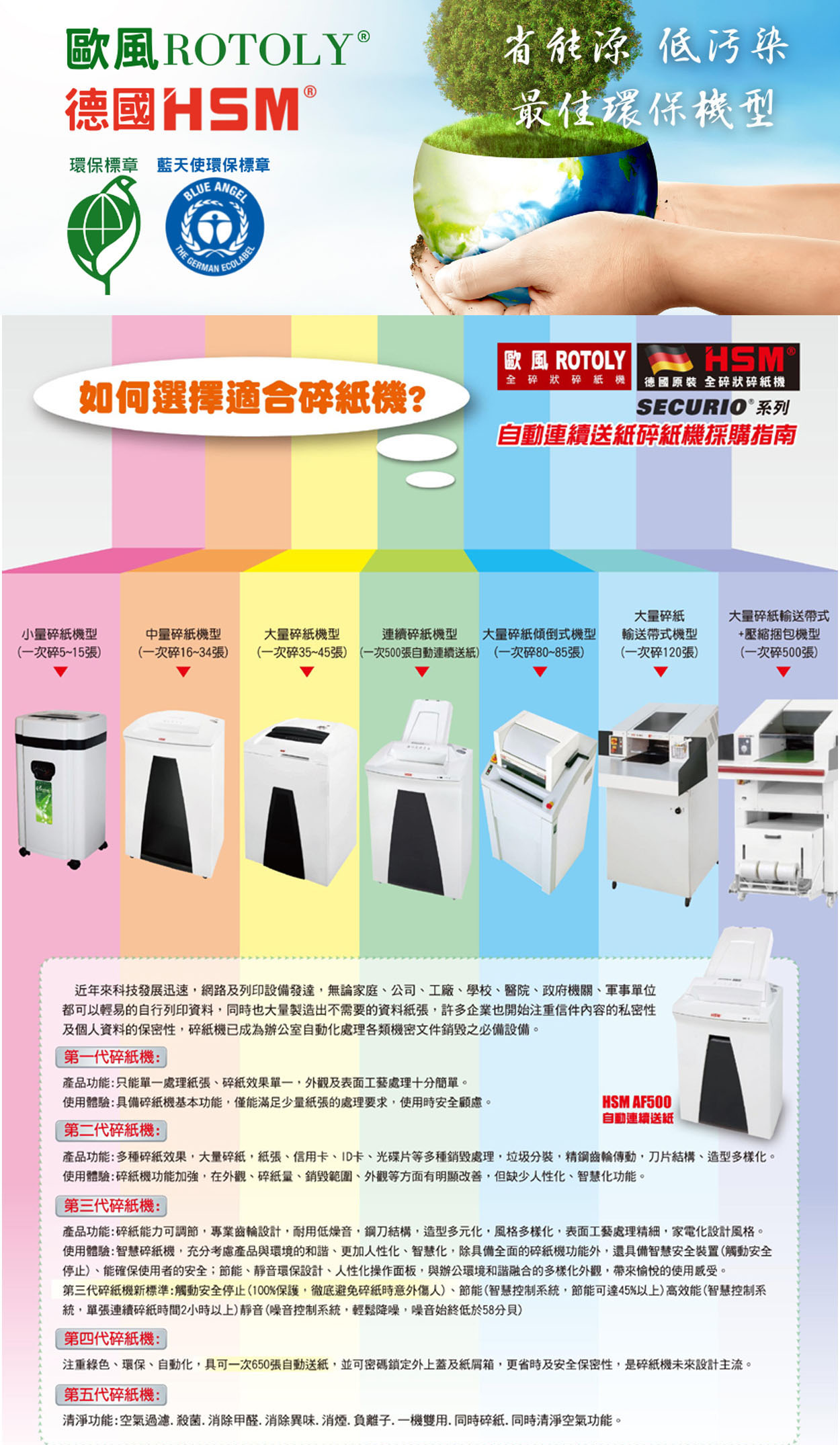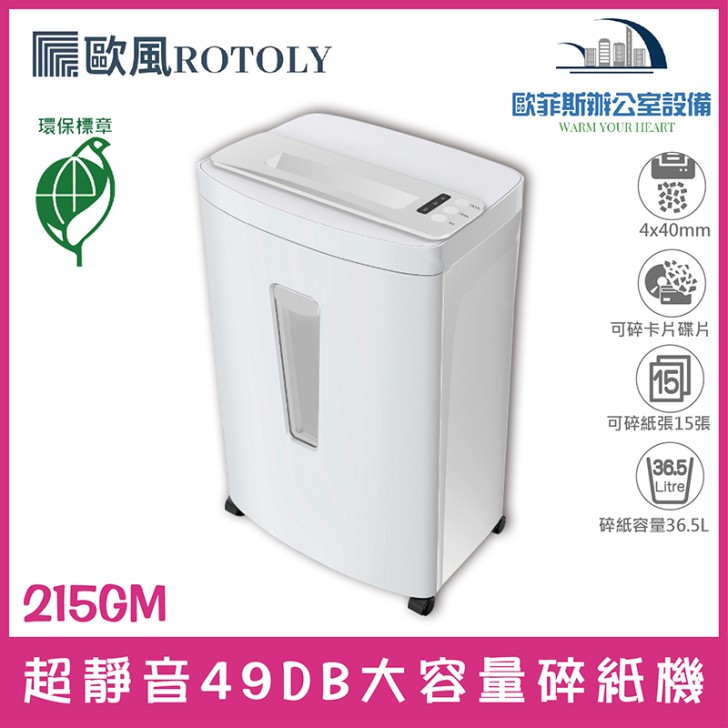 ROTOLY 歐風 215GM 是一款專業級高效率碎紙機,專為解決辦公室文件銷毀需求而設計。它提供高效率大容量的碎紙能力,可一次處理多達15張70磅紙張,並配備36.5公升大容量碎紙桶,大幅提升辦公效率。獨特的超靜音設計(噪音值僅49DB),確保在辦公環境中運行時不造成干擾。此外,其多功能與防卡紙機制支援碎紙、訂書針、信用卡及光碟片,並具備自動退紙功能,有效避免卡紙問題,是找尋高效率且不易卡紙的商用碎紙機的最佳選擇。若有任何疑問,歡迎聯繫官方客服人員。